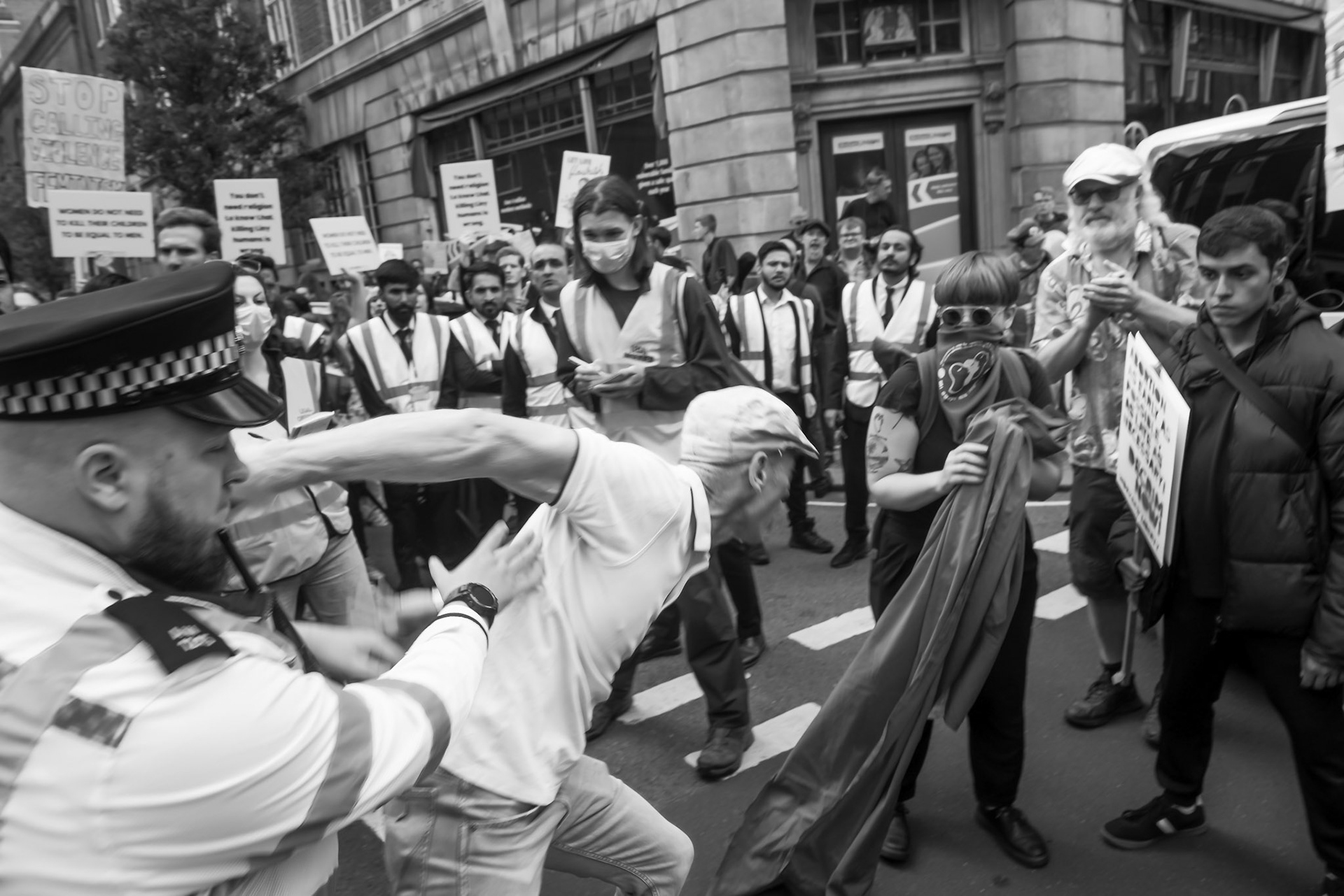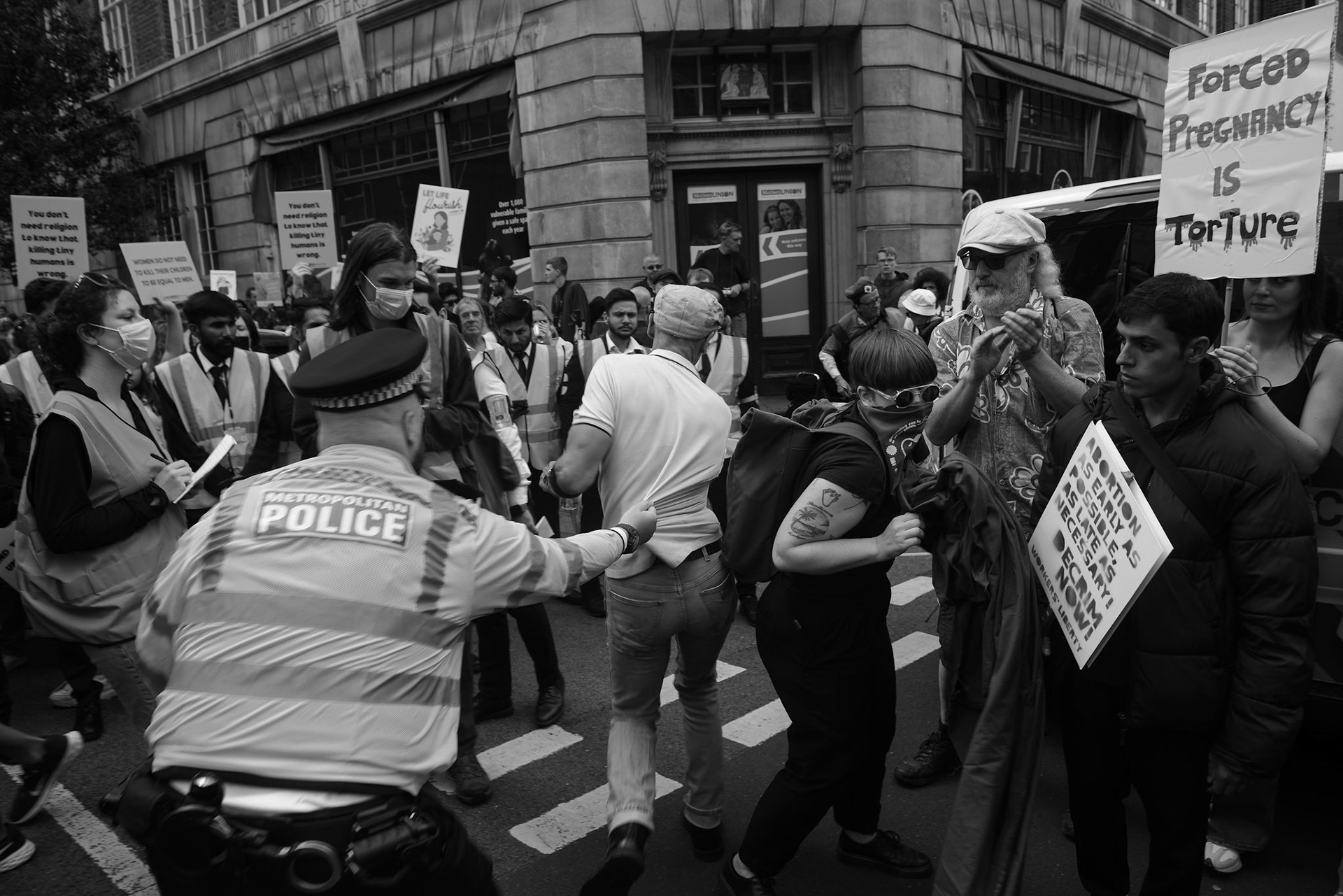 Rival abortion rights protestors clash in Central London
