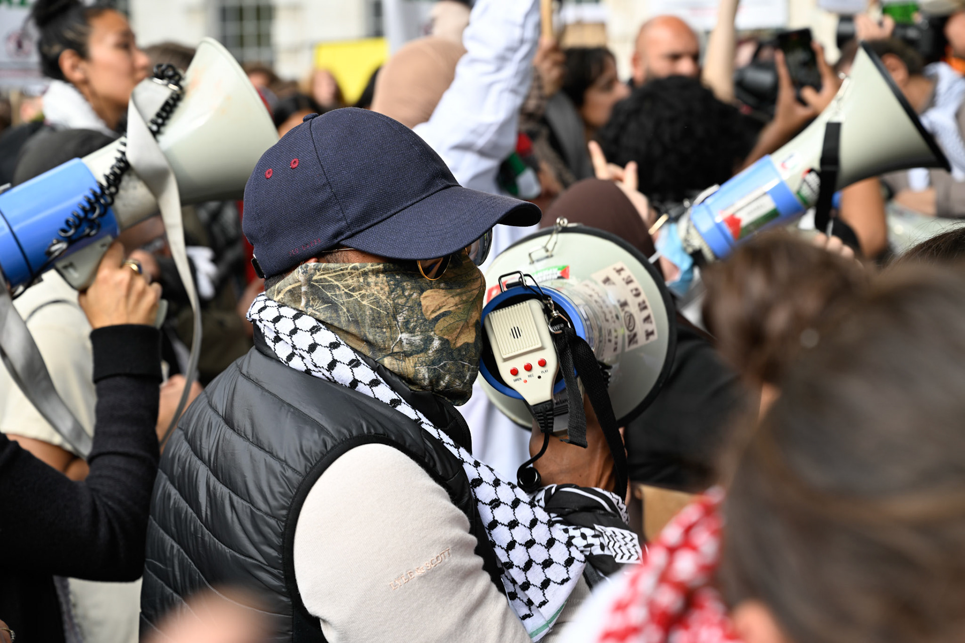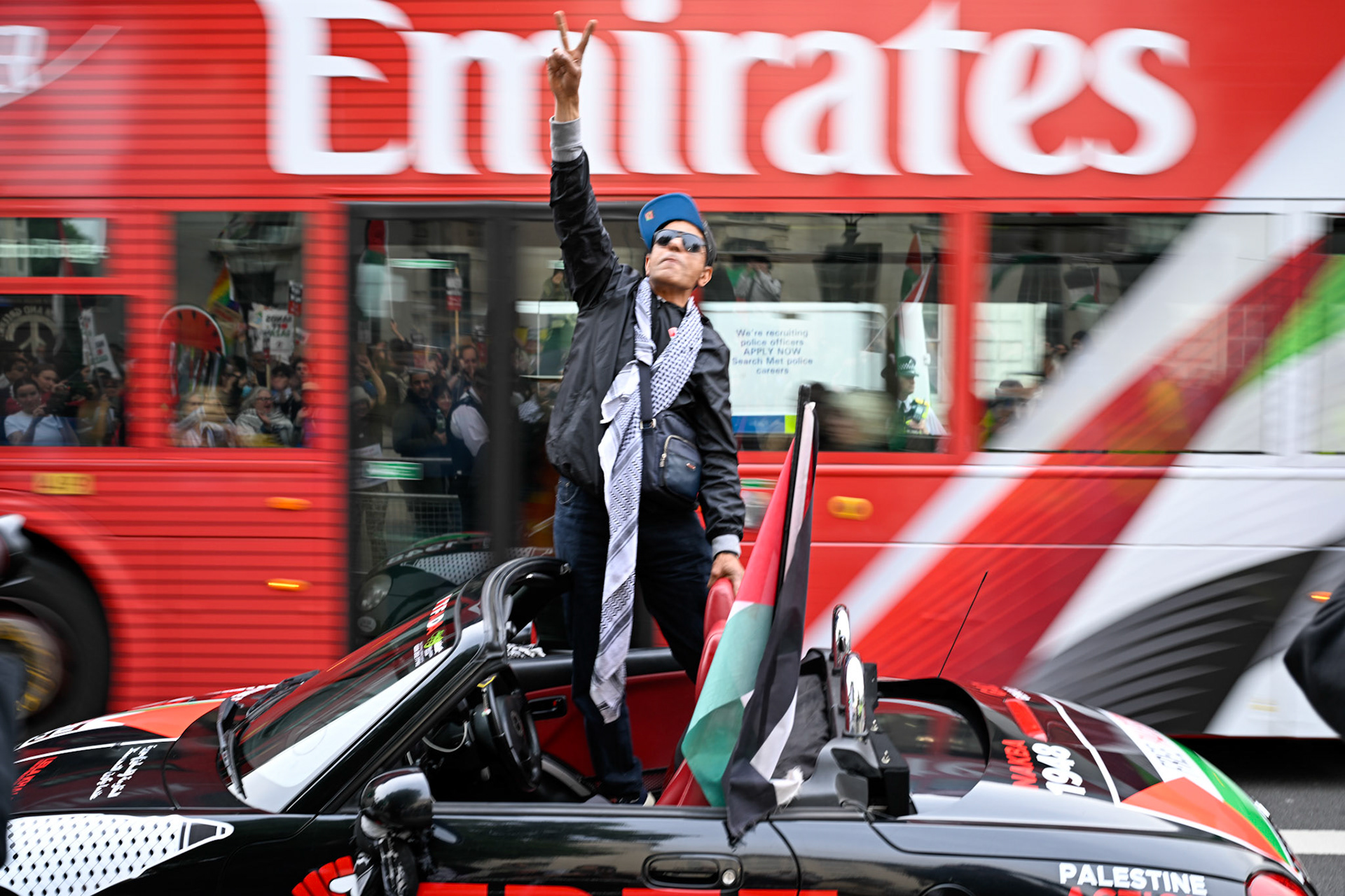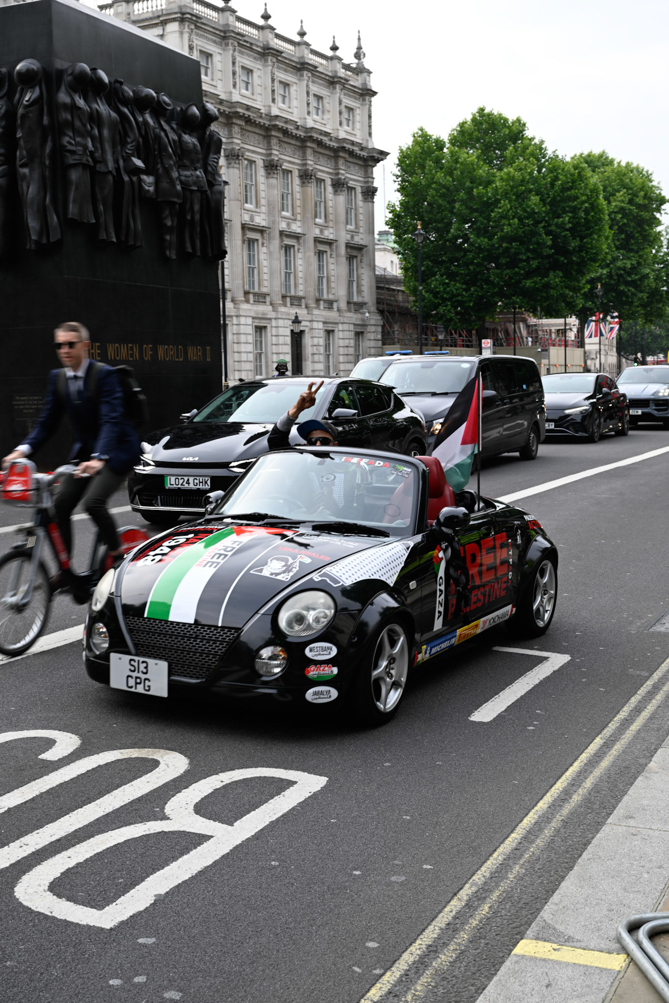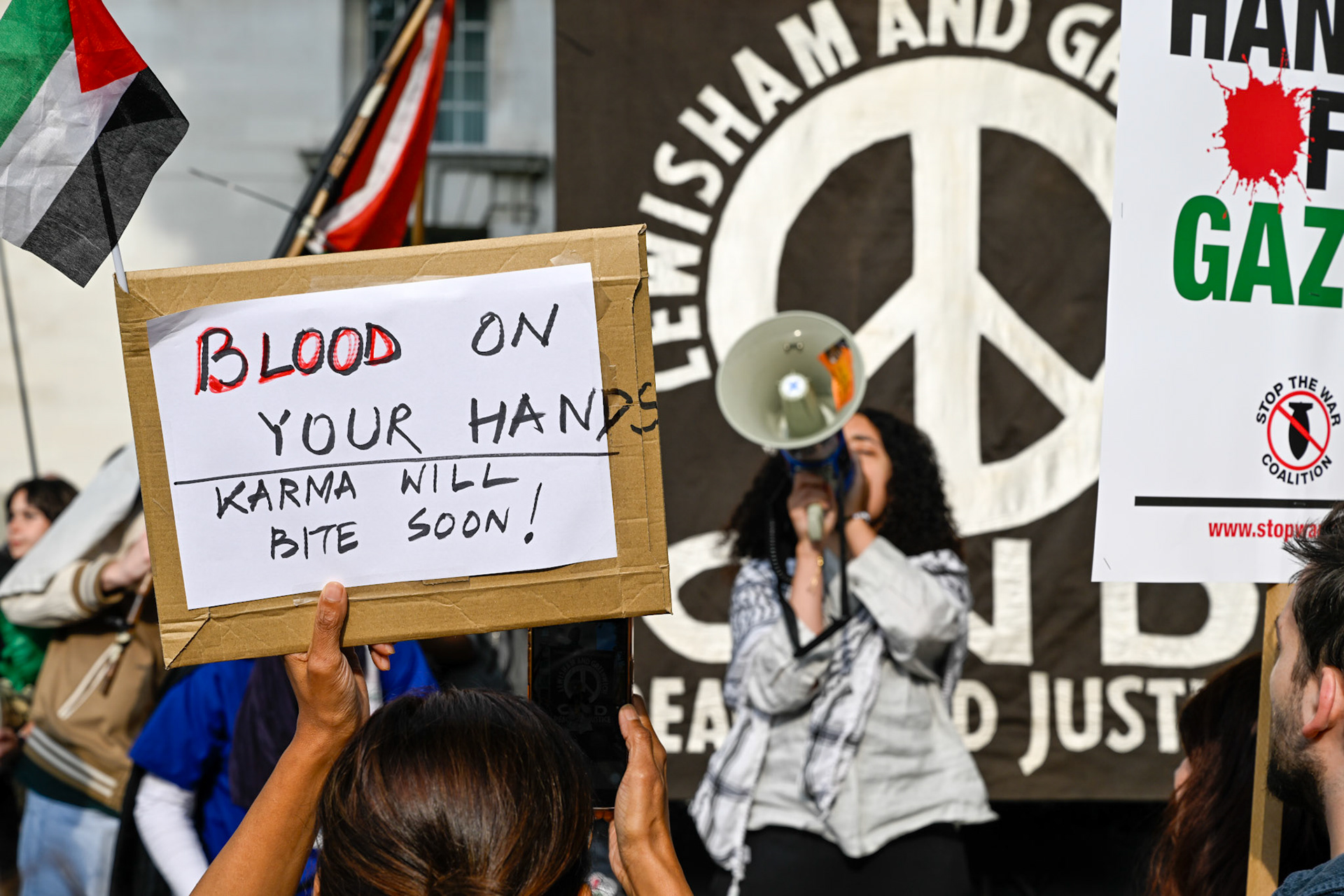 A protest opposite Downing Street in support of Greta Thunberg and colleagues on the Freedom Flotilla Coalition vessels attempting to bring humanitarian aid to Gaza that were ceased by the IDF and escorted to Israel